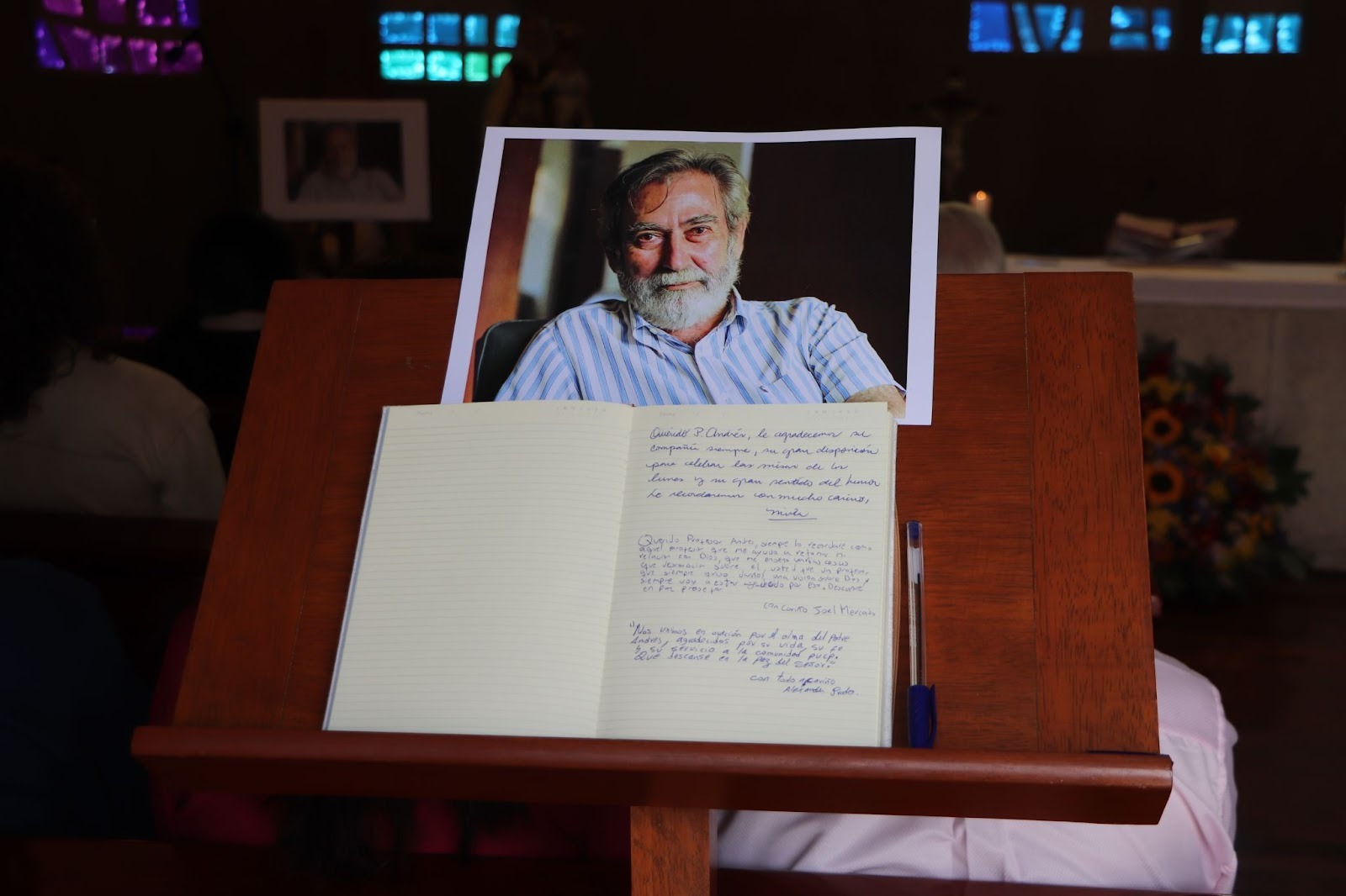 La celebración eucarística fue presidida por el P. Edmundo Alarcón y contó con la participación de docentes, estudiantes y personal administrativo. Como parte del acto se dispuso un Cuaderno de condolencias, en el que los asistentes pudieron escribir mensajes para expresar su afecto y gratitud por la vida del P. Andrés. Durante la homilía, el P. Edmundo realizó un significativo recorrido por la vida y obra del P. Andrés.